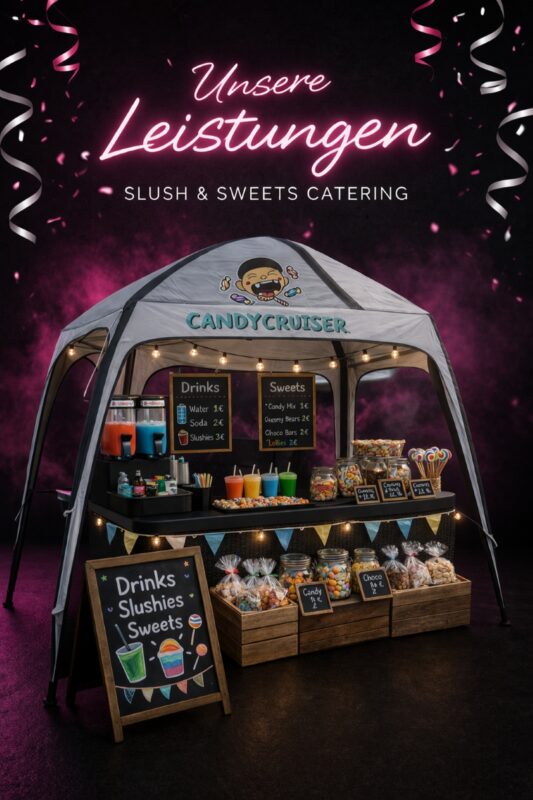 Mit Getränken, Süßigkeiten, Candy Bar, Eis am Stiel und Slush-Eis sorgen wir für echte Highlights auf deinem Event.
